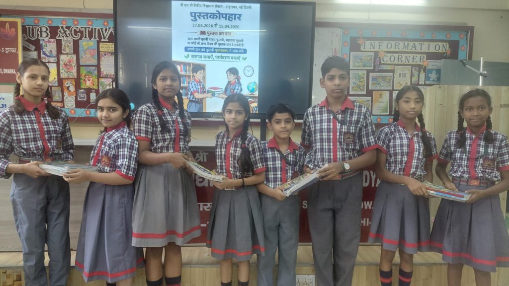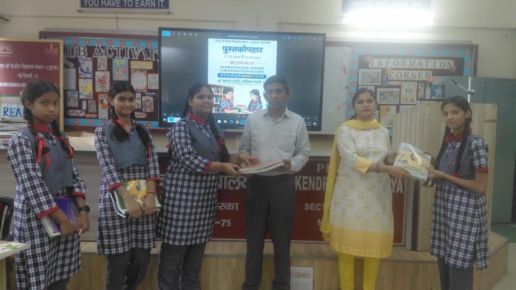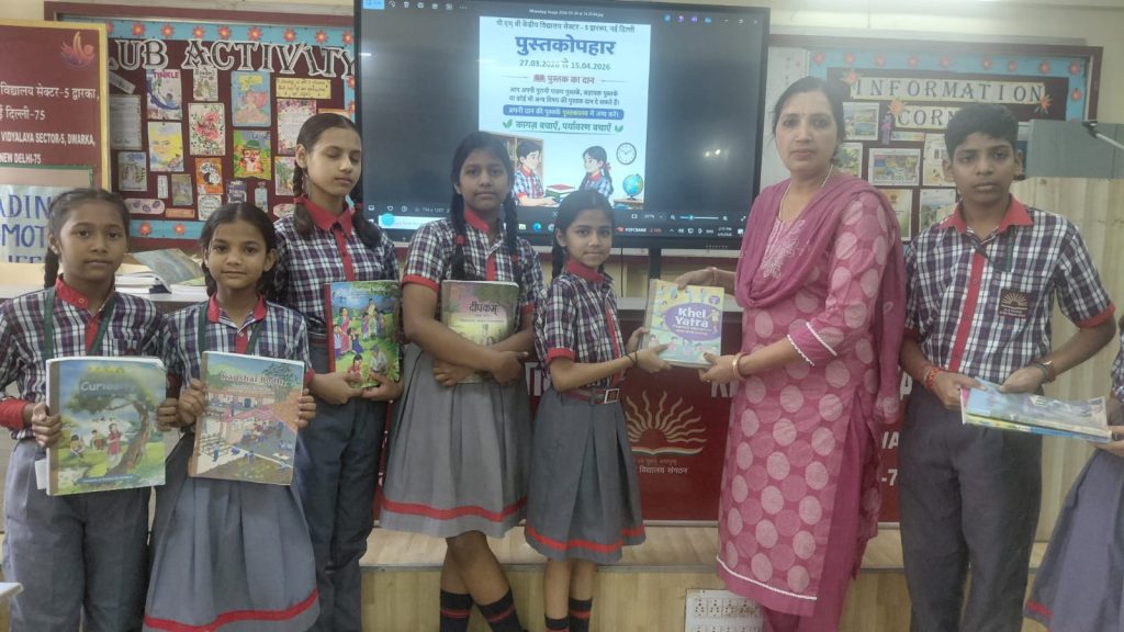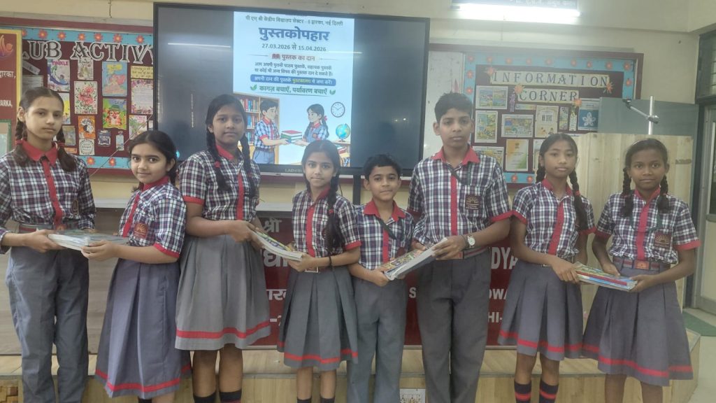 केंद्रीय विद्यालय द्वारका सेक्टर-5 में पुस्तक उपहार दिवस 27 मार्च – 15 अप्रैल 2026 को मनाया गया जिसमे पुरानी पाठ्य पुस्तकों का आदान प्रदान किया गया और बच्चों ने पर्यावरण को बचाने का संकल्प लिया | विद्यालय की उप प्राचार्य श्री सुनील कुमार देवरानी ने इस कार्यक्रम का शुभारम्भ किया और बच्चों को इस कार्यक्रम का महत्त्व भी समझाया |
